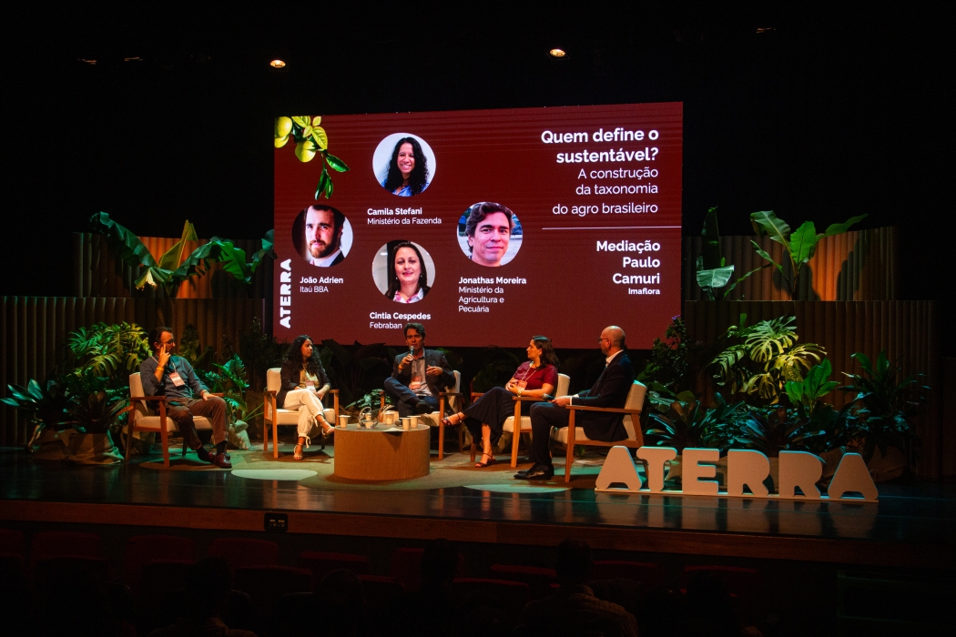 A transição para uma economia de baixo carbono exige não apenas tecnologias e avanços em práticas sustentáveis, mas também um sistema claro de classificação que oriente políticas públicas e fluxos financeiros para investimentos. É nesse contexto que ganha corpo a Taxonomia Rural Sustentável, um dos eixos do Plano de Transformação Ecológica do governo federal. Prevista para ter sua primeira versão publicada em outubro de 2025, a taxonomia busca definir de forma objetiva o que pode ser considerado sustentável na agropecuária e em demais setores, criando uma linguagem comum entre governo, produtores, investidores e sociedade civil. Durante o evento Aterra 2025, realizado em comemoração aos 30 anos do Imaflora, a construção da taxonomia do agro brasileiro foi tema de um dos painéis.